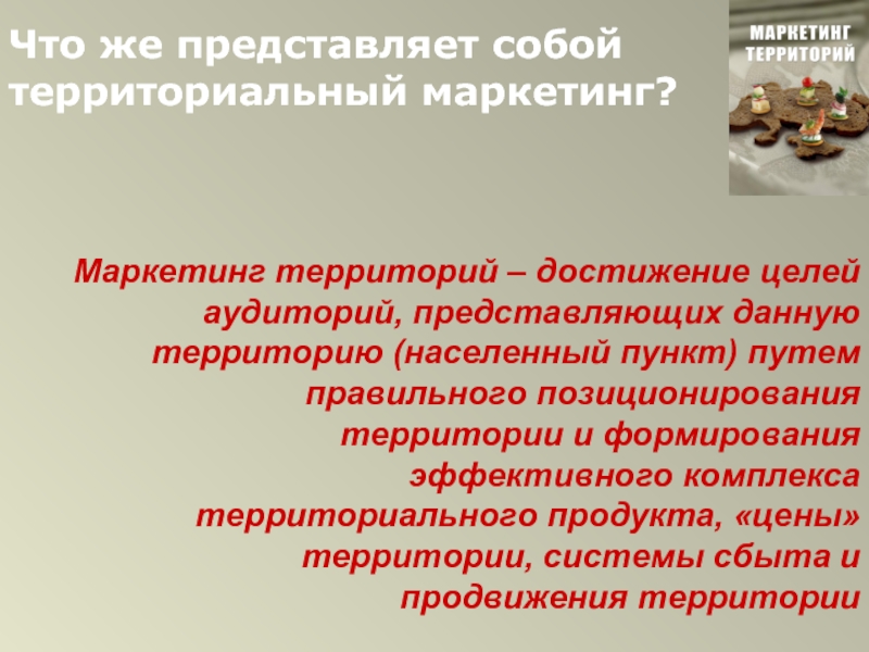 Слайд 3Что же представляет собой территориальный маркетинг?