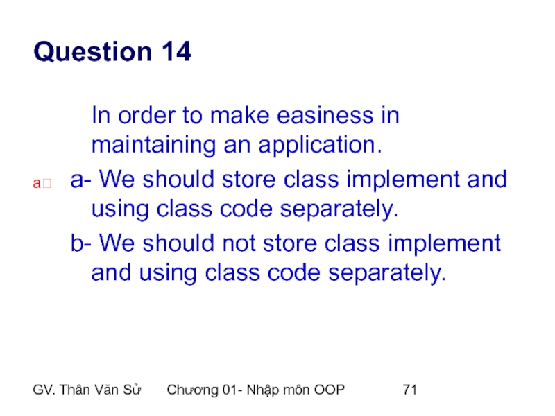 a- We should store class implement and using class code separately.