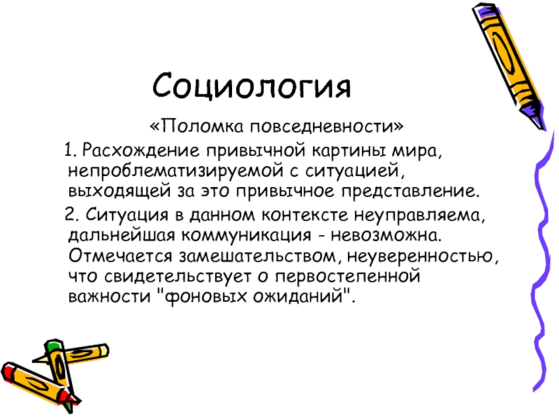 Тесно связано с понятиями «повседневности» и «фоновые ожидания»
