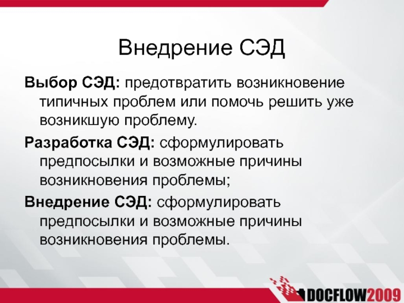 Внедрение СЭД: сформулировать предпосылки и возможные причины возникновения проблемы.