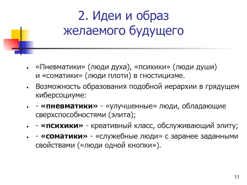 - «соматики» - «служебные люди» с заранее заданными свойствами («люди одной кнопки»).