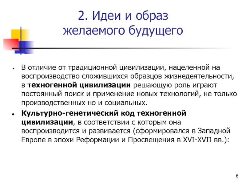 воспроизводство сложившихся образцов жизнедеятельности, в техногенной цивилизации решающую роль играют постоянный поиск и применение новых технологий, не только производственных но и социальных.