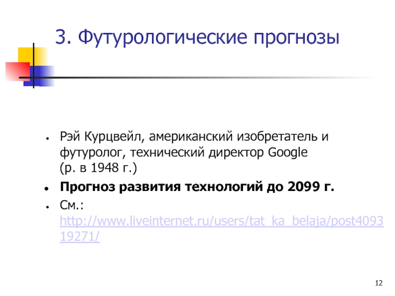 Слайд 12Рэй Курцвейл, американский изобретатель и футуролог, технический директор Google