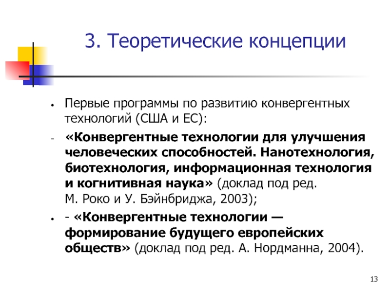 - «Конвергентные технологии — формирование будущего европейских обществ» (доклад под ред. А. Нордманна, 2004).