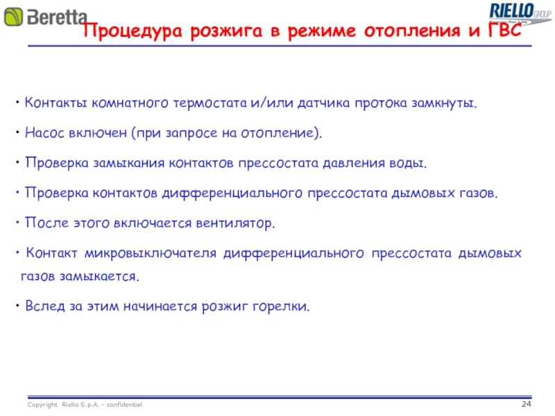 Процедура розжига в режиме отопления и ГВС