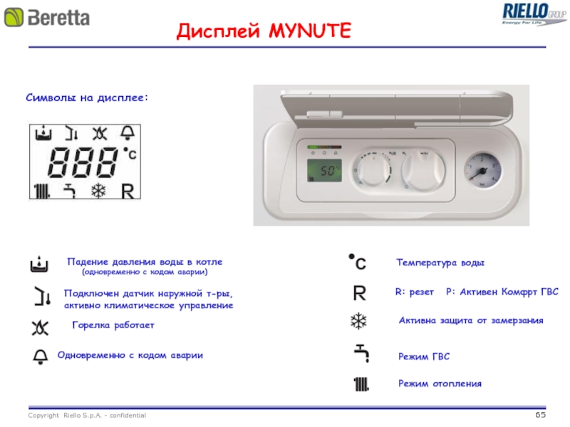 R: резет P: Активен Комфрт ГВС