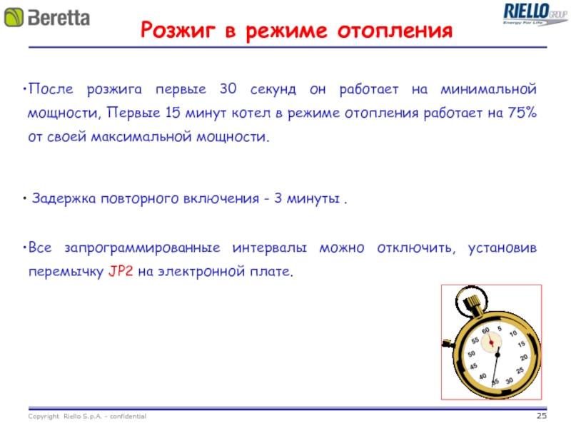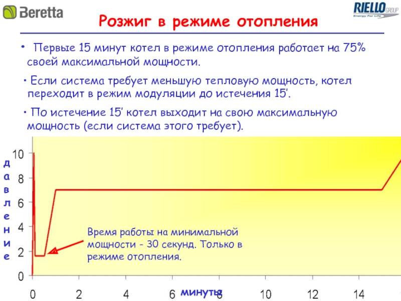 Первые 15 минут котел в режиме отопления работает на 75% своей максимальной мощности.