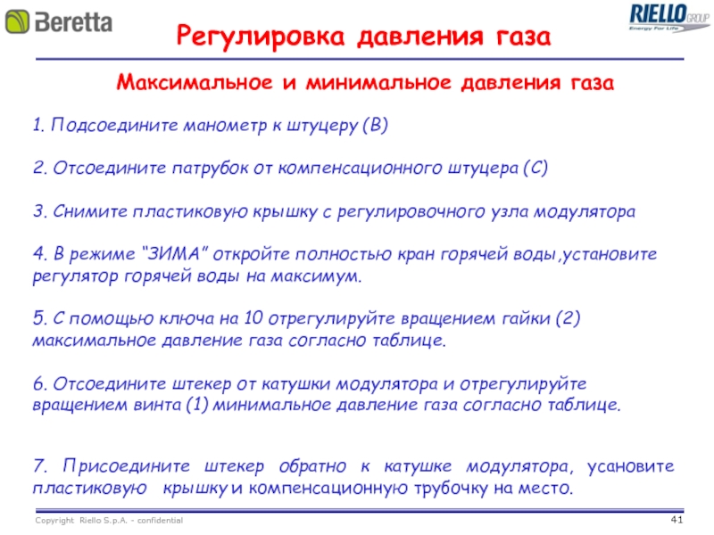 Регулировка давления газа