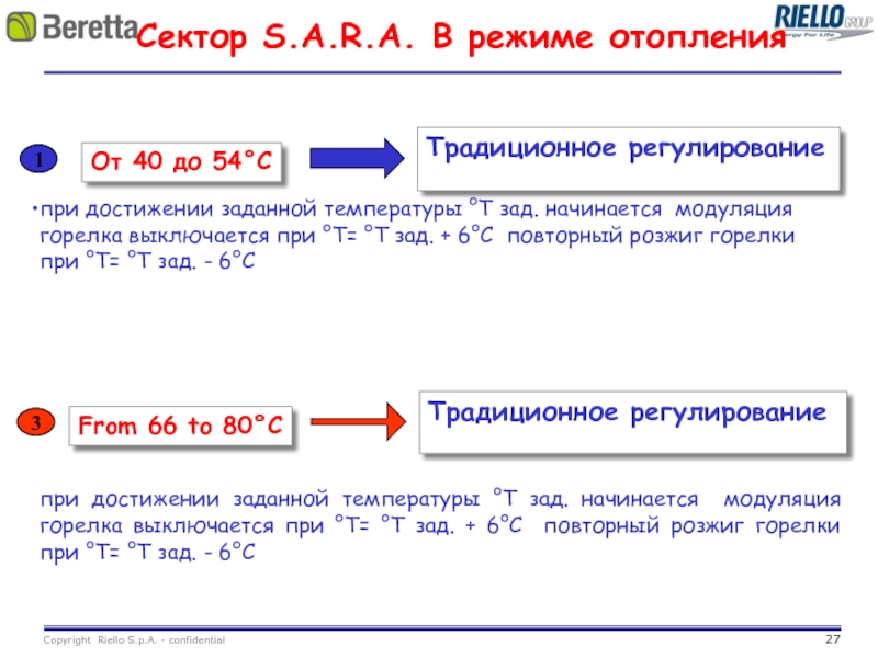при достижении заданной температуры °T зад. начинается модуляция горелка выключается при °T= °T зад. + 6°C повторный розжиг горелки при °T= °T зад. - 6°C