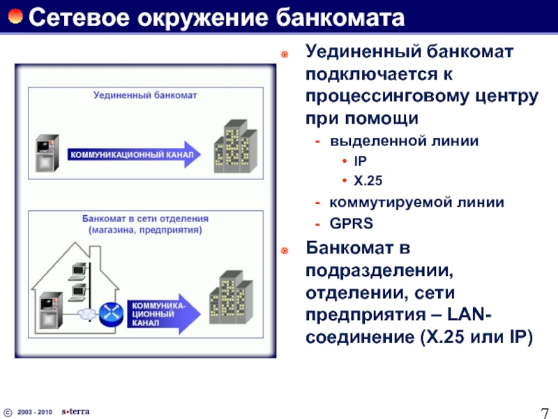 Банкомат в подразделении, отделении, сети предприятия – LAN-соединение (Х.25 или IP)