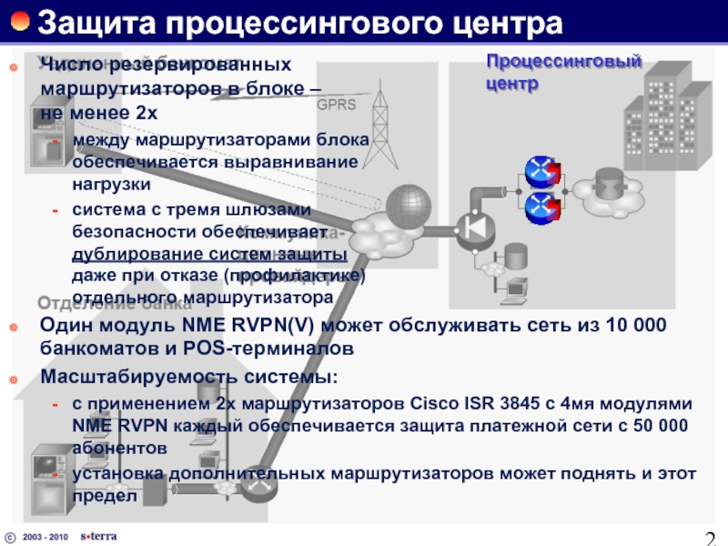 с применением 2х маршрутизаторов Cisco ISR 3845 с 4мя модулями NME RVPN каждый обеспечивается защита платежной сети с 50 000 абонентов