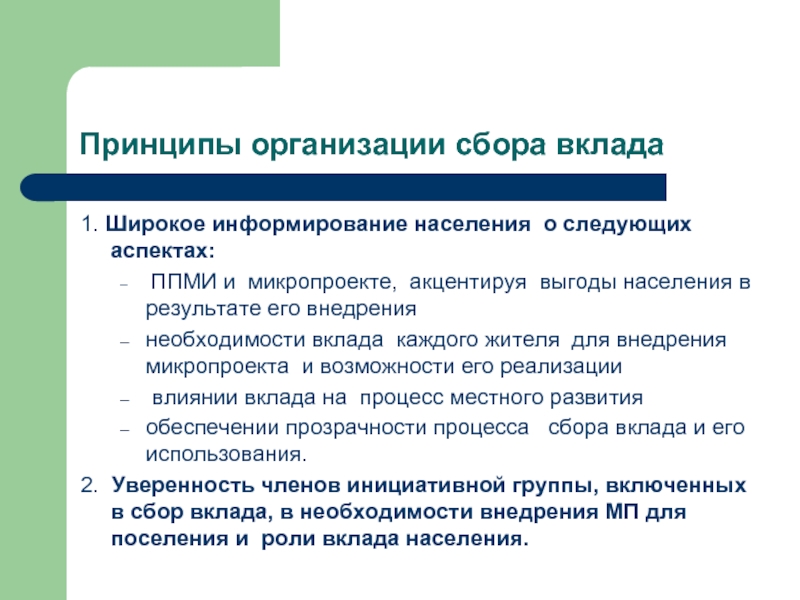 и микропроекте, акцентируя выгоды населения в результате его внедрения