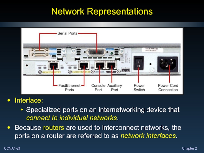 A connector or outlet on a networking device where the media is connected to a host or other networking device.