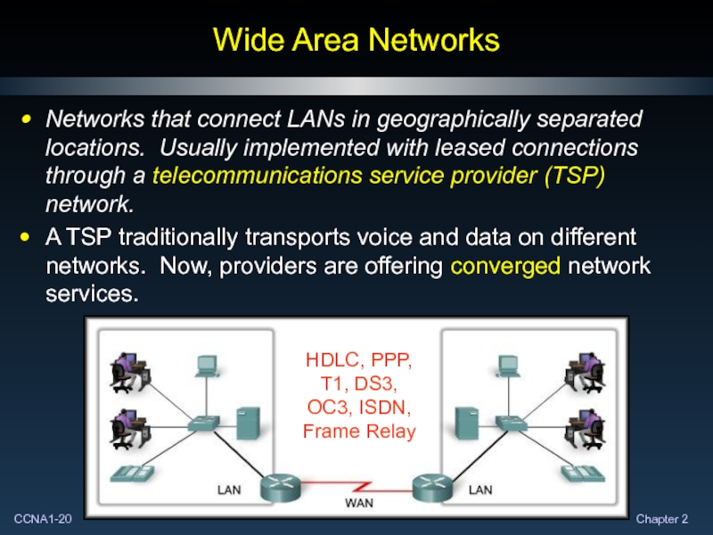 HDLC, PPP, T1, DS3, OC3, ISDN, Frame Relay