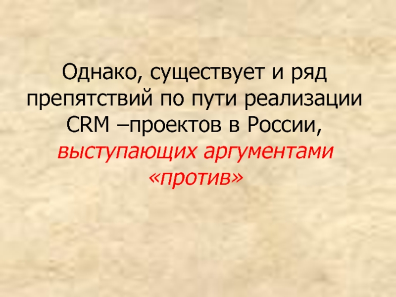 Слайд 12Однако, существует и ряд препятствий по пути реализации CRM –проектов в