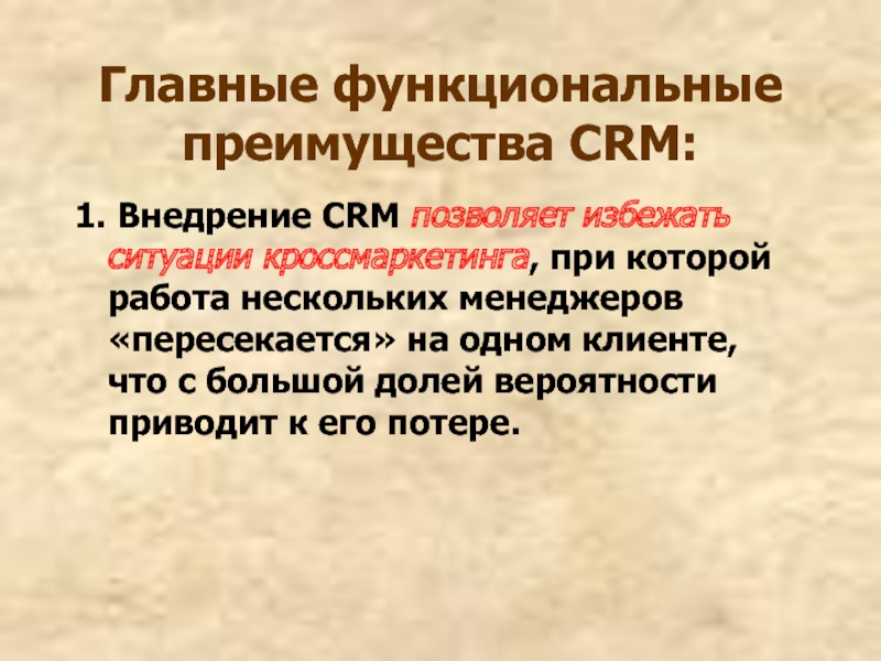 1. Внедрение CRM позволяет избежать ситуации кроссмаркетинга, при