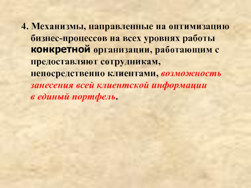 4. Механизмы, направленные на оптимизацию бизнес-процессов на всех уровнях работы конкретной организации, работающим