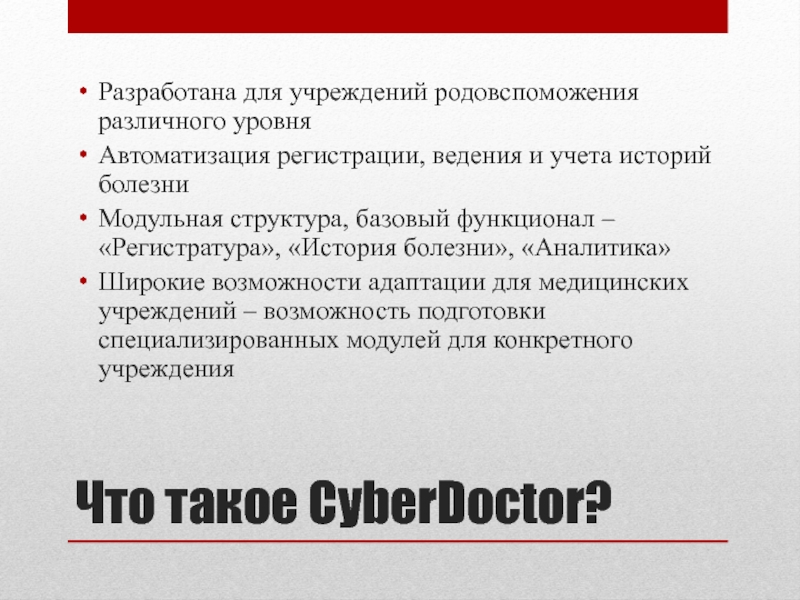 Попробуйте демо-версию системы CyberDoctor на сайте – http://demo.cyber-doc.ru