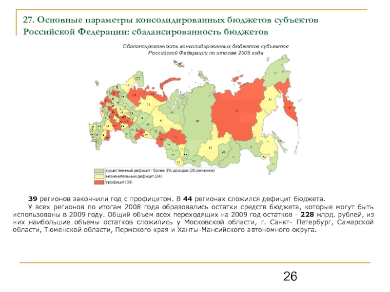 27. Основные параметры консолидированных бюджетов субъектов Российской Федерации: сбалансированность бюджетов