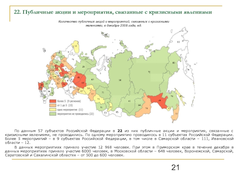 Количество публичных акций и мероприятий, связанных с кризисными явлениями, в декабре 2008 года, ед.