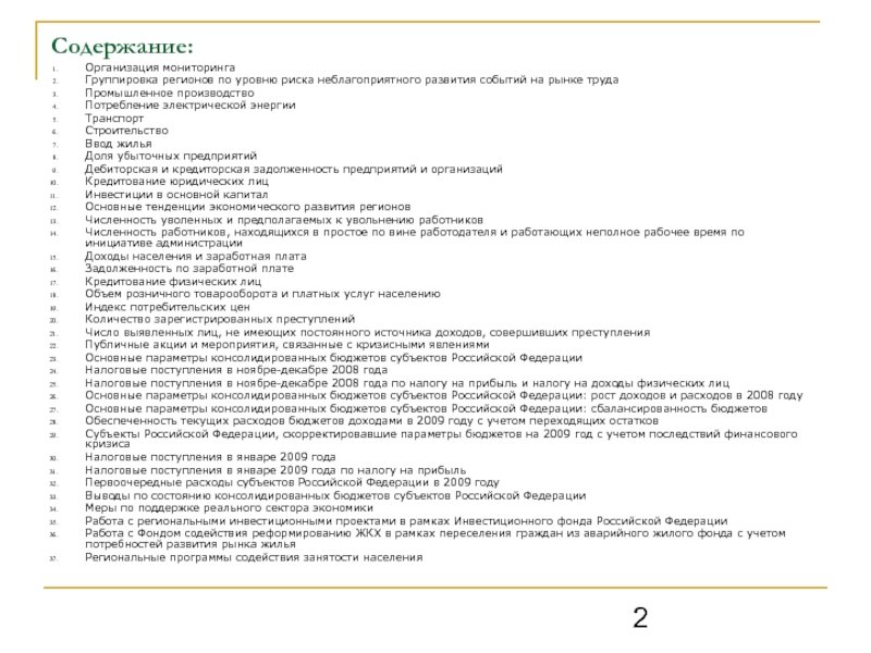 В ноябре 2008 года доходы населения снизились в 59 субъектах Российской Федерации. Снижение темпов доходов наблюдалось в 11 из 17 субъектов Российской Федерации группы с высоким риском (в частности в Белгородской, Тульской областях), в 10 из 14 регионов группы со средним риском и высокой долей моногородов и в 18 из 26 регионов группы со средним риском.