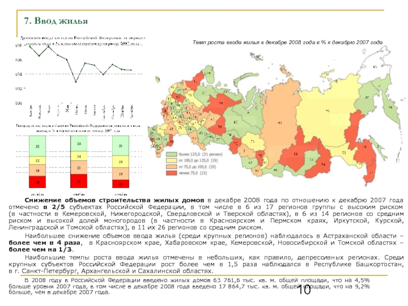 В 2008 году в Российской Федерации введено жилых домов 63 761,6 тыс. кв. м. общей площади, что на 4,5% больше уровня 2007 года, в том числе в декабре 2008 года введено 17 864,7 тыс. кв. м. общей площади, что на 9,2% больше, чем в декабре 2007 года.