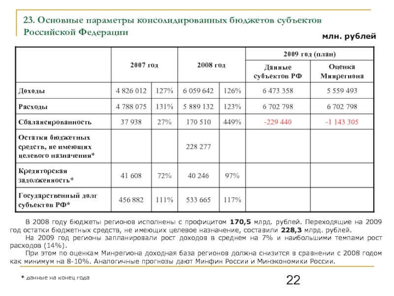 Сбалансированность консолидированных бюджетов субъектов Российской Федерации по итогам 2008 года