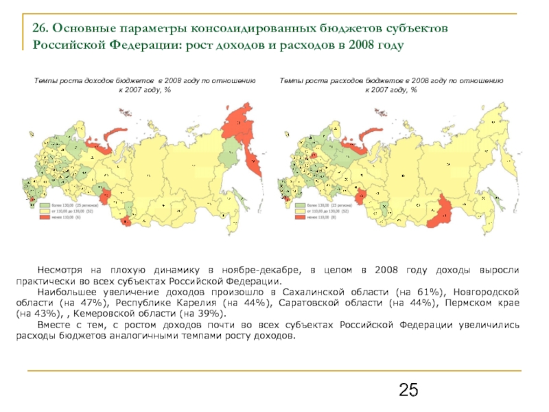 26. Основные параметры консолидированных бюджетов субъектов Российской Федерации: рост доходов и расходов в 2008 году