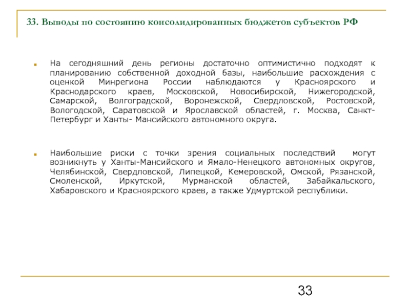 33. Выводы по состоянию консолидированных бюджетов субъектов РФ