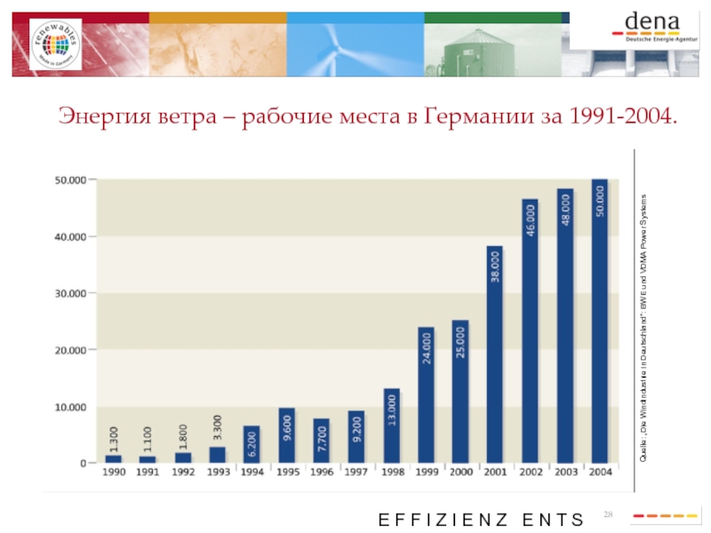 Энергия ветра – рабочие места в Германии за 1991-2004.