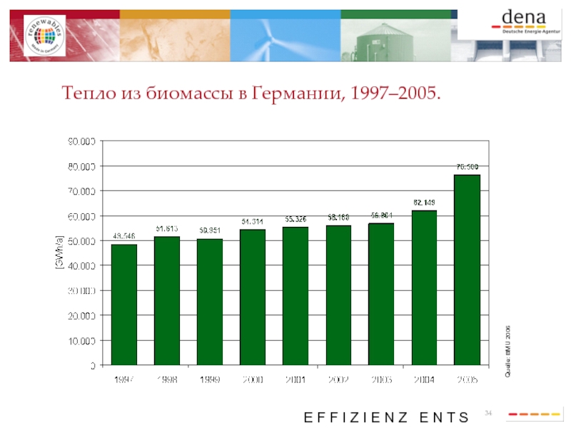 Тепло из биомассы в Германии, 1997–2005.