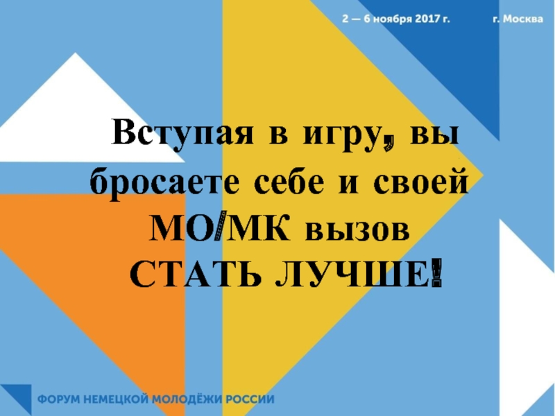 Слайд 12 Вступая в игру, вы бросаете себе и своей МО/МК вызов