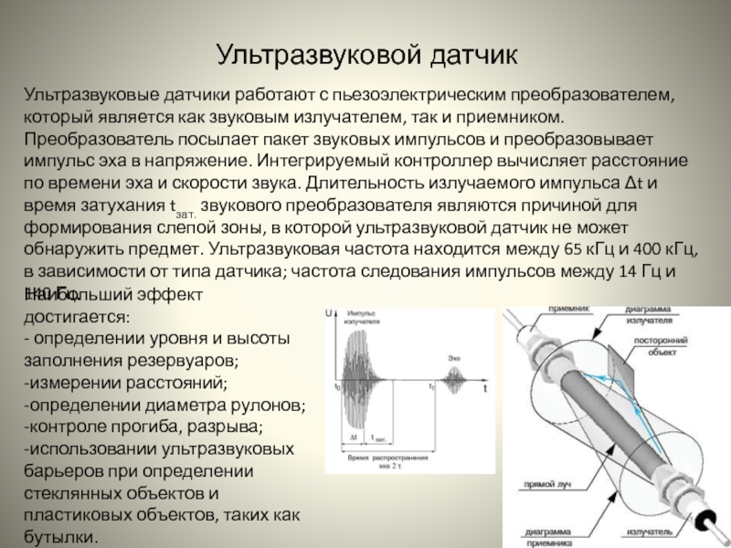 -использовании ультразвуковых барьеров при определении стеклянных объектов и пластиковых объектов, таких как бутылки.