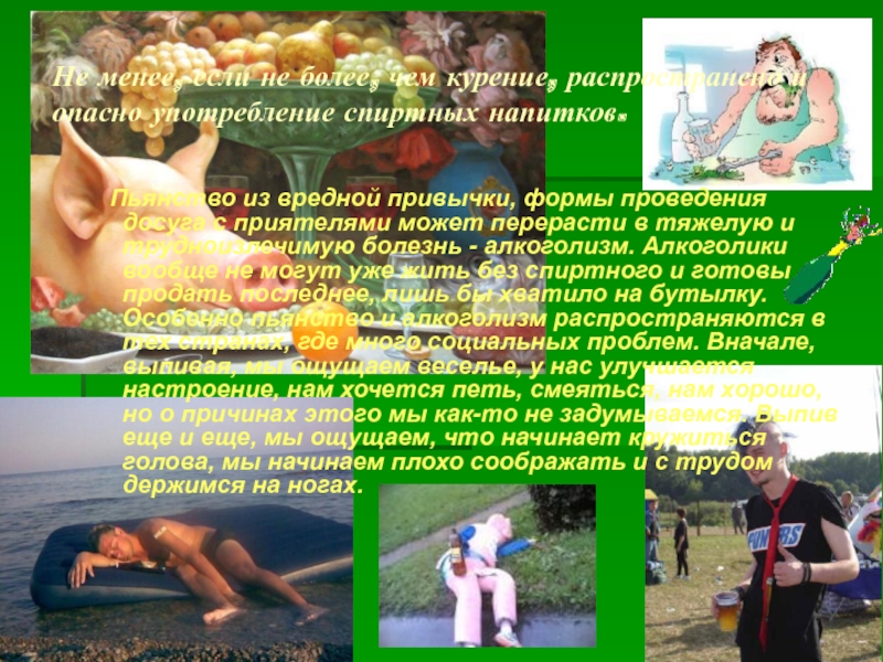 Слайд 6Не менее, если не более, чем курение, распространено и опасно употребление