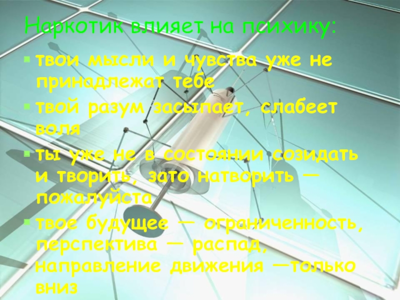 Слайд 19НАРКОТИК УКОРАЧИВАЕТ ЖИЗНЬ