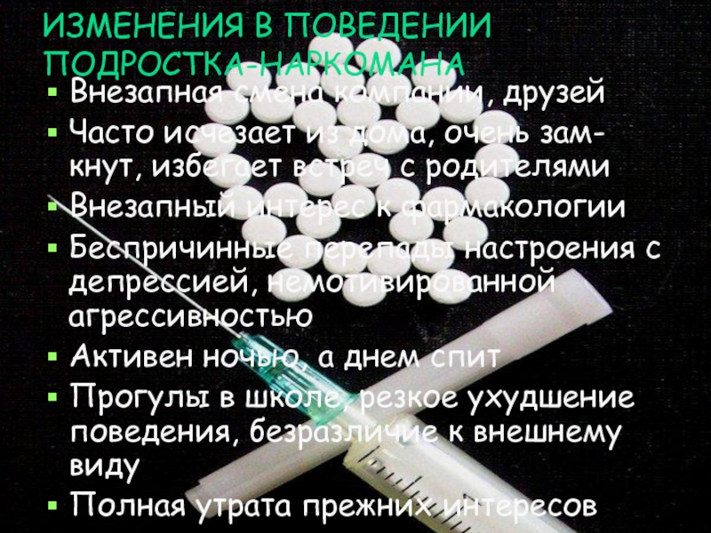 Слайд 15ИЗМЕНЕНИЯ В ПОВЕДЕНИИ ПОДРОСТКА-НАРКОМАНА