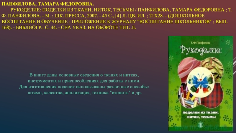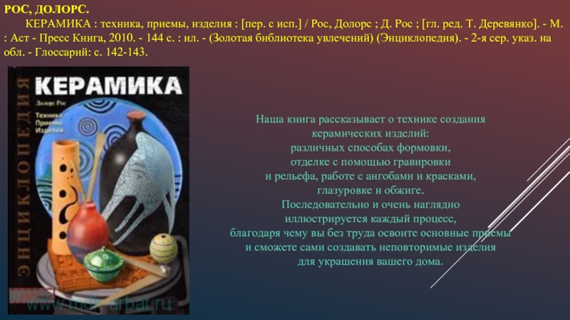 Подробно знакомит читателей с самим ремеслом,