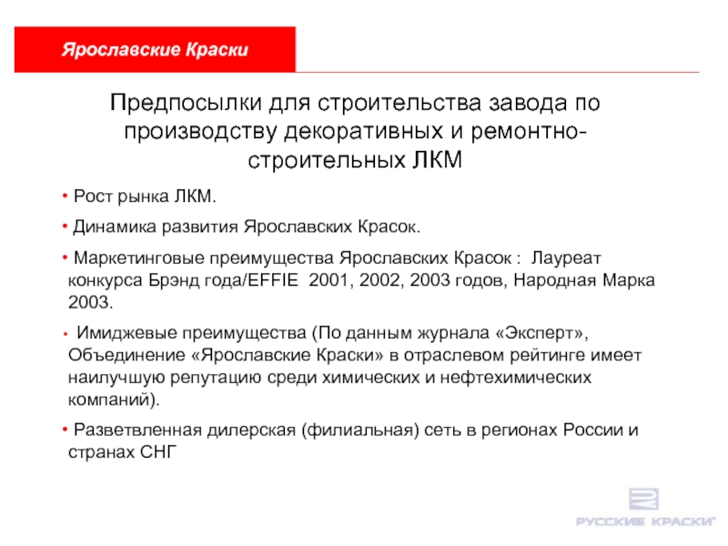 Предпосылки для строительства завода по производству декоративных и ремонтно-строительных ЛКМ
