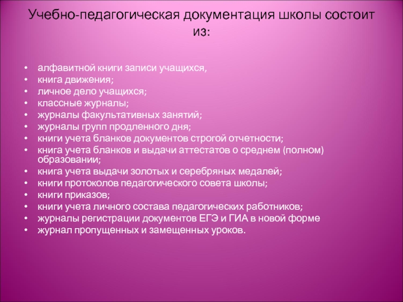 Слайд 8Учебно-педагогическая документация школы состоит из: