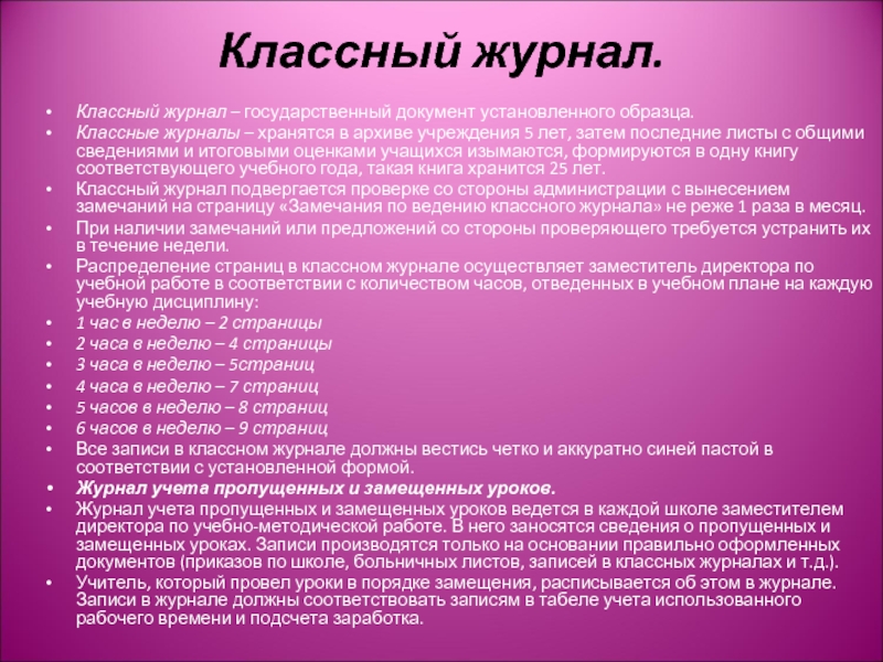 Классный журнал – государственный документ установленного образца.