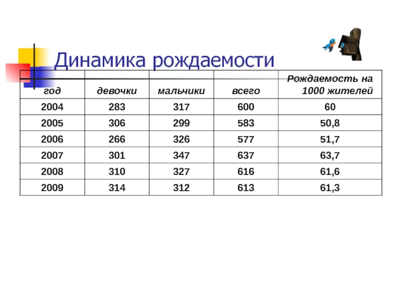 Слайд 17Демографическая ситуация в школе №9 г. Волжска за период с 2004-2009годы