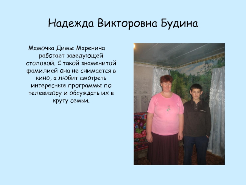 Мамочка Димы Маренича работает заведующей столовой. С такой знаменитой