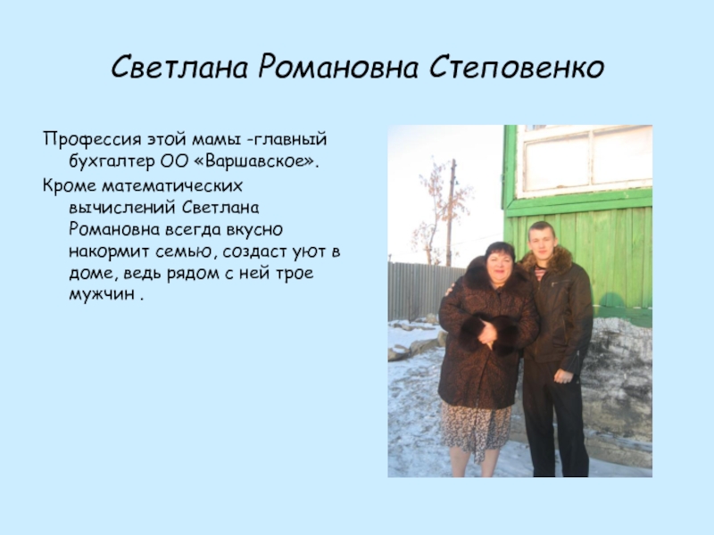 Профессия этой мамы -главный бухгалтер ОО «Варшавское».