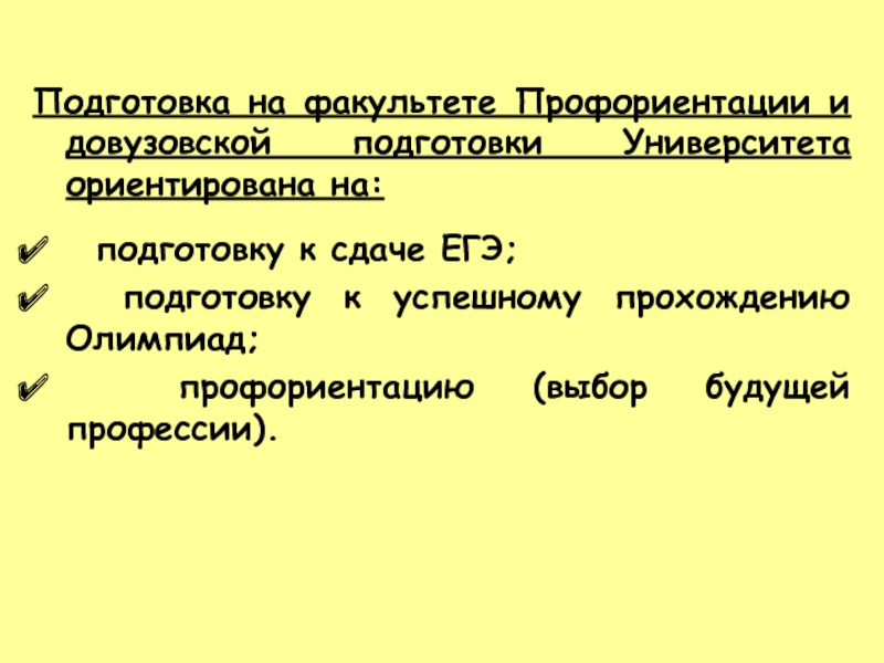 Подготовка на факультете Профориентации и довузовской подготовки Университета ориентирована на: