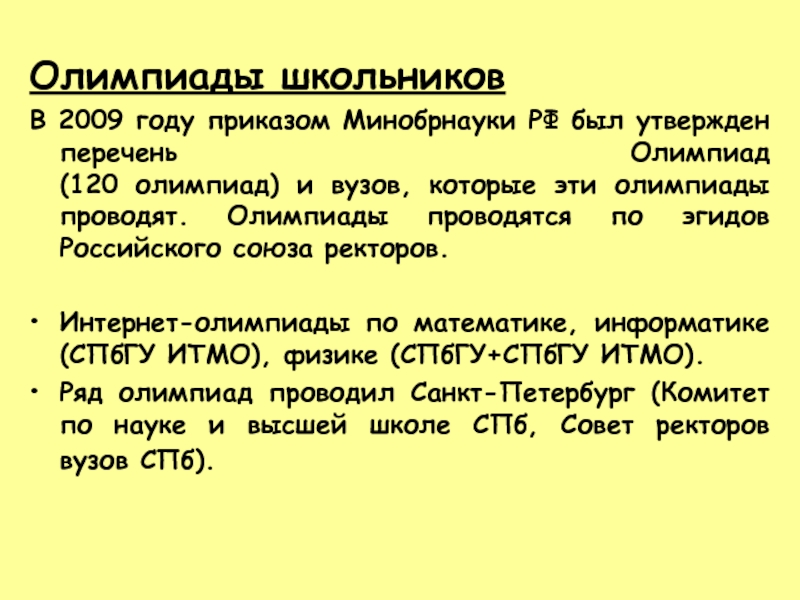 (приказ о проведении олимпиад должен быть опубликован в