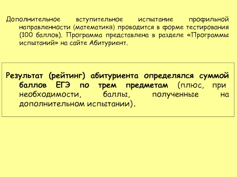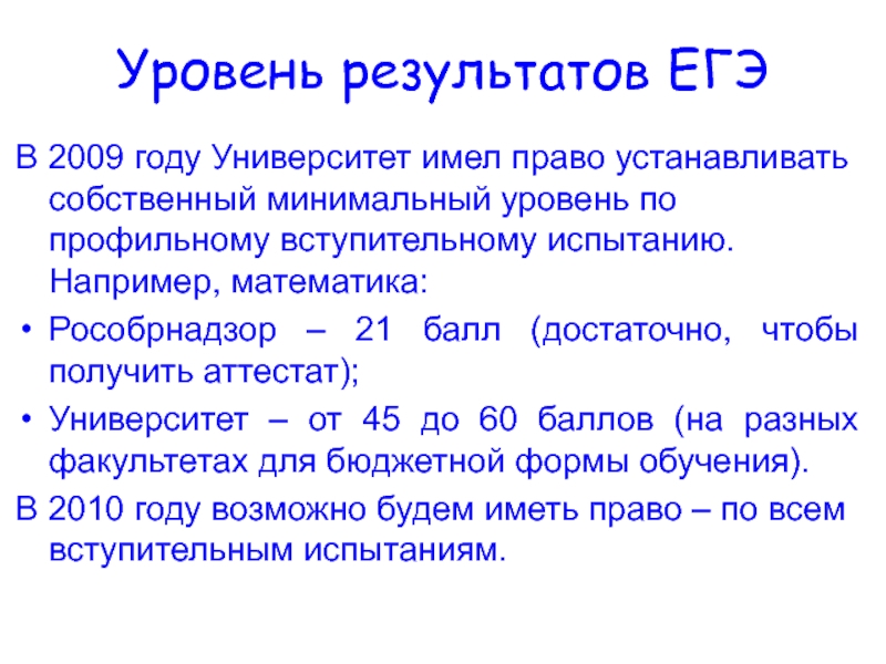уровень по профильному вступительному испытанию. Например, математика: