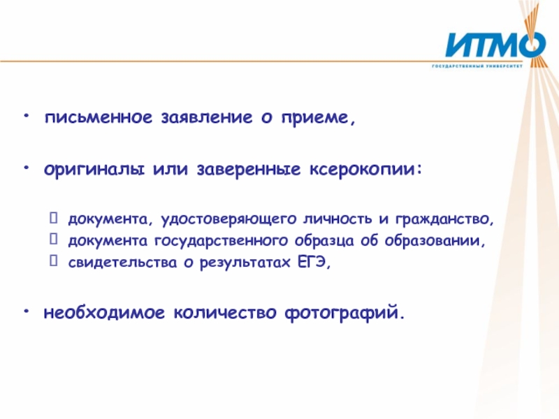 письменное заявление о приеме,