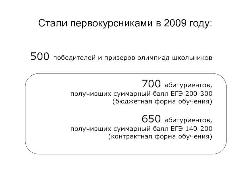 Слайд 44Стали первокурсниками в 2009 году: