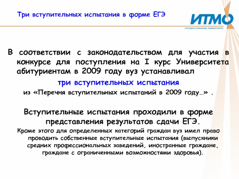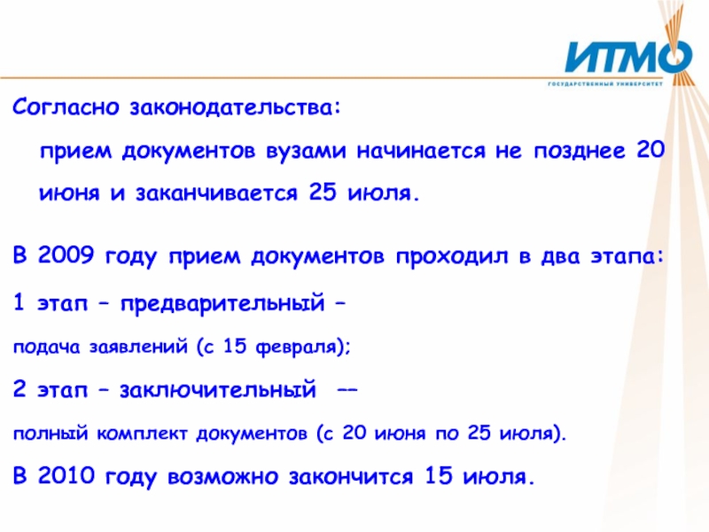 В 2009 году прием документов проходил в два этапа: