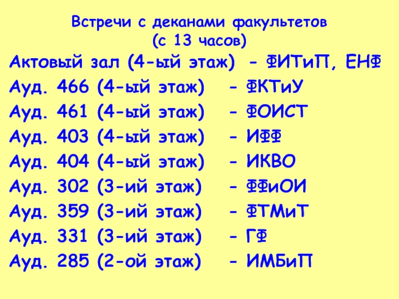 Слайд 55Встречи с деканами факультетов